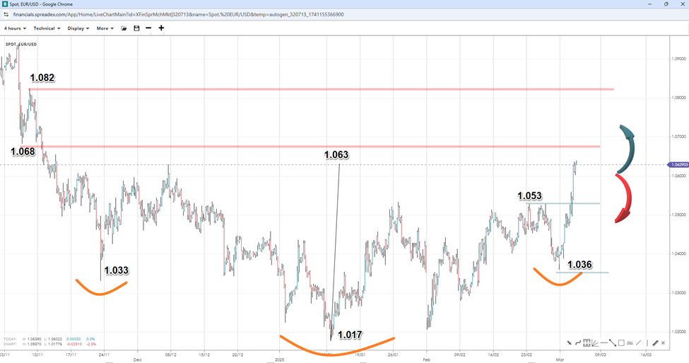Meanwhile, the focus remains on the potential implications of tariffs. The Eurozone economy is fragile, with its largest economy, Germany, having witnessed two consecutive years of negative growth. It appears that lower interest rates, which typically support an economy, may not be as effective in mitigating the implications of a global trade war. Some analysts even warn that interest rates could rise during the year. In recent sessions, traders have been more risk-averse, selling stocks to buy bonds due to increasing concerns around tariffs, which weighed on the dollar and strengthened the Euro. If ECB President Christine Lagarde appears to side with the faction favouring a pause, the Euro could experience further upside. However, if the market does not fully price in a rate cut for the next meeting and the ECB strongly indicates continued easing, it could erase some recent gains in EURUSD.