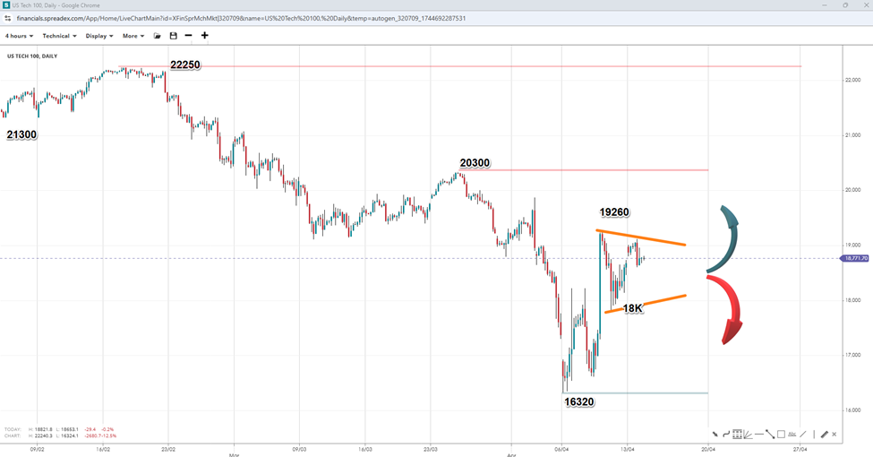 While tech has received a reprieve from the escalating trade tensions, the potential for further tariffs casts uncertainty over the recent rally. With ASML expected to kick off the tech/AI earnings season, market participants will want to monitor the impact of the trade war on the industry to get clues about whether sentiment should remain cautious amid the threat of additional tariffs.