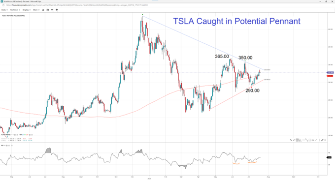 Tesla to Resume Decline or Breakout of Pennant