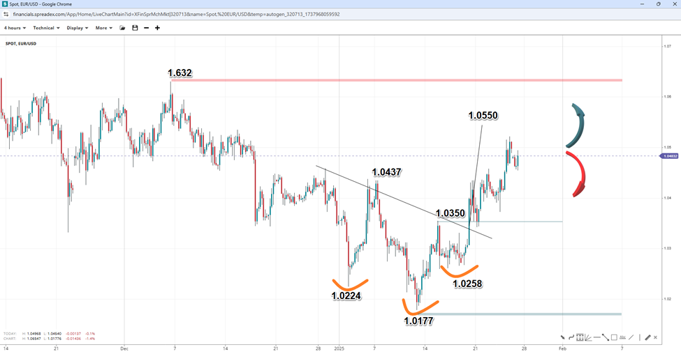 Despite the change in course towards holding rather than cutting rates, the expectation is that the language in the policy statement and during the presser will not see significant modifications. It is worth noting that there is a slight change in the composition of the FOMC voting members as part of the usual annual rotation, which has shifted the tone to slightly more hawkish. Given the strong consensus on the rate hold, markets are likely seeking insight into the timing of the next rate cut. If the majority of economists are correct in their prediction for March, then the market would likely have to adjust and weaken the US dollar.​