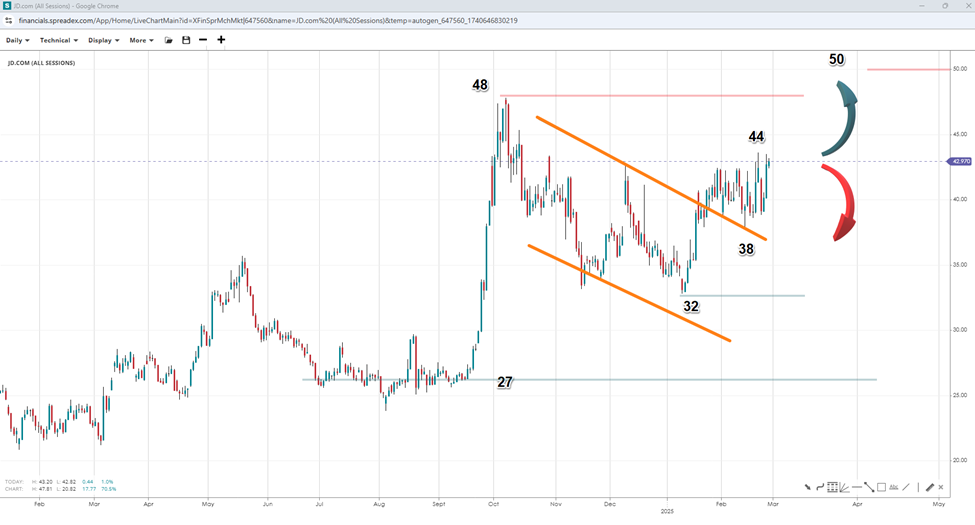 It's worth noting that this is not the first time Chinese tech stocks have experienced a surge followed by a subsequent fading effect. Last September saw significant gains following the promise of economic stimulus, but even after the recent recovery, the tech giants still remain far below their valuations from five years ago. While the press often cites Alibaba as a representative of the tech sector, its competitor, JD.com, might be flying under the radar. Similar to Alibaba's post-earnings report surge, JD.com is expected to report earnings on March 6, with analysts predicting a 20% growth in its bottom line.