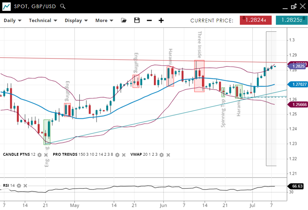 NOTE: These charts use the ‘Pro Trading Tools’ available on the SpreadEx trading platform. To use them, log in to your SpreadEx Financials Account and click ‘Technical’ from the menu on any chart.