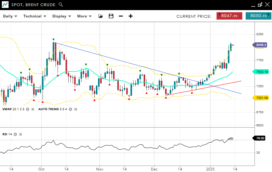 | Brent Crude | Bullish | Impulsive | 8049 | 7533 | 7031 | 8040 | 76 |