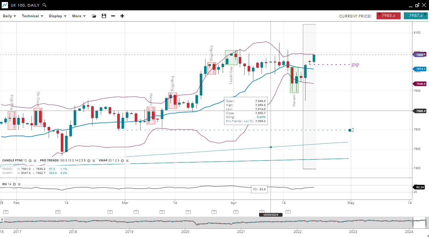 NOTE: These charts use the ‘Pro Trading Tools’ available on the SpreadEx trading platform. To use them, log in to your SpreadEx Financials Account and click ‘Technical’ from the menu on any chart.