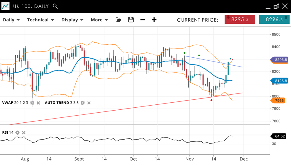 | UK 100 | Neutral | Consolidation | 8295 | 8125 | 7966 | 8290 | 64 |