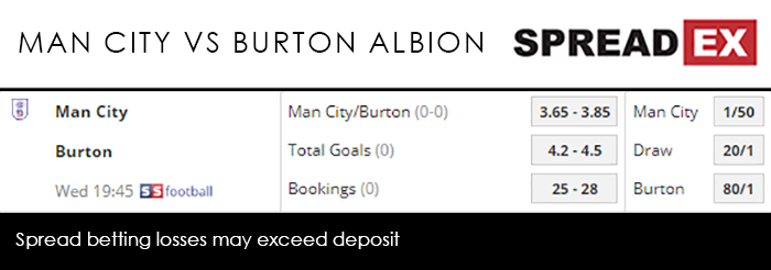 They managed to keep the Reds in their sights in their first fixture of the New Year, beating Liverpool 2-1 on January 3rd. But while that saw Jurgen Klopp’s 2018/19 unbeaten run in the Premier League come to an end, it still leaves the Scouse side 4 points clear in 1st place. In an ominous sign for Burton, Rotherham ended up becoming a victim of City’s frustrations over the weekend, the Championship side suffering a 7-0 FA Cup defeat, with goals for Raheem Sterling, Philip Foden, Gabriel Jesus, Riyad Mahrez, Nicolas Otamendi and Leroy Sane (the other was an own goal from Semi Ajayi). Sadly for the Brewers, a lot of those names are set to appear on Wednesday night. Mahrez has a Super Mega PGM of 52-60, with Sane at 53-61, Sterling at 61-71 and Jesus at 99-119; top scorer Sergio Aguero, meanwhile, is at a terrifying 119-144. This is far and away the biggest test Burton have faced in the EFL Cup this season. Their only Premier League competition has been against the relegation-battling Burnley in the 3rd round, a game they won 2-1. Since then they’ve beaten Nottingham Forest 3-2 at home and Middlesbrough 1-0 away. Not to put down Nigel Clough’s achievement, but Wednesday’s semi-final 1st leg feels less a question of who will win, and more a question of how many will City win by. Spreadex are offering a Man City/Burton Albion Goal Supremacy spread of 3.65-3.85 alongside an average target price of 4.2-4.5.